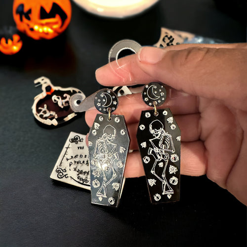 Dancing Skeleton Black Acrylic Earrings